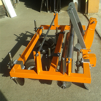 Lleva dos discos de arado delanteros que abren la tierra y dos posteriores que cubren la parte lateral del plàstico de germinación para que quede sujeto.